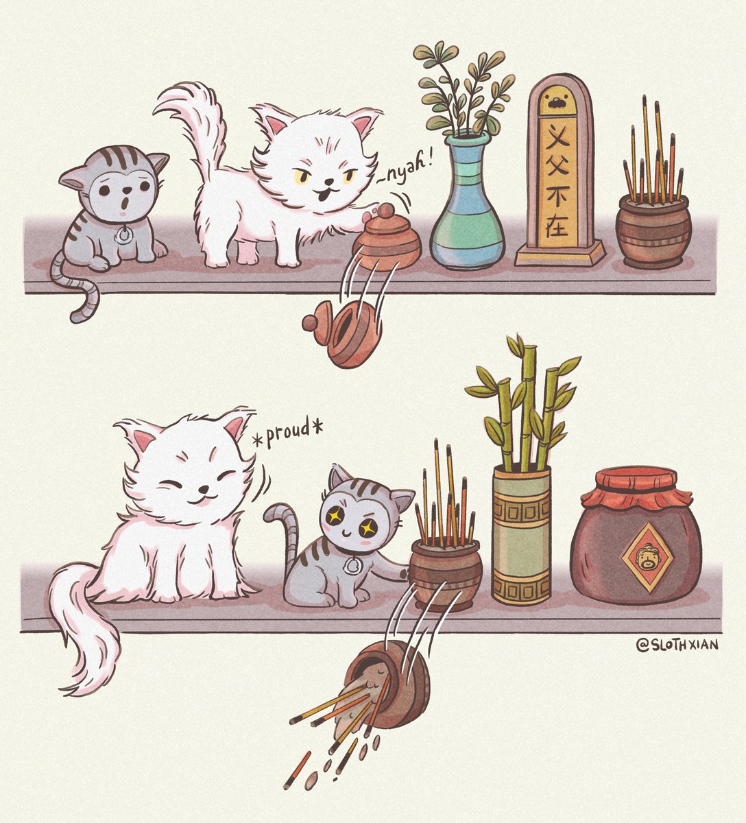Slothxian On Twitter Ye Baiyi Is That Jerky Cat Who Knocks All Stuff Off Your Shelves Xie Er Is The Impressionable Street Kitten Learning His Bad Ways Both Cats Hate Wen Kexing